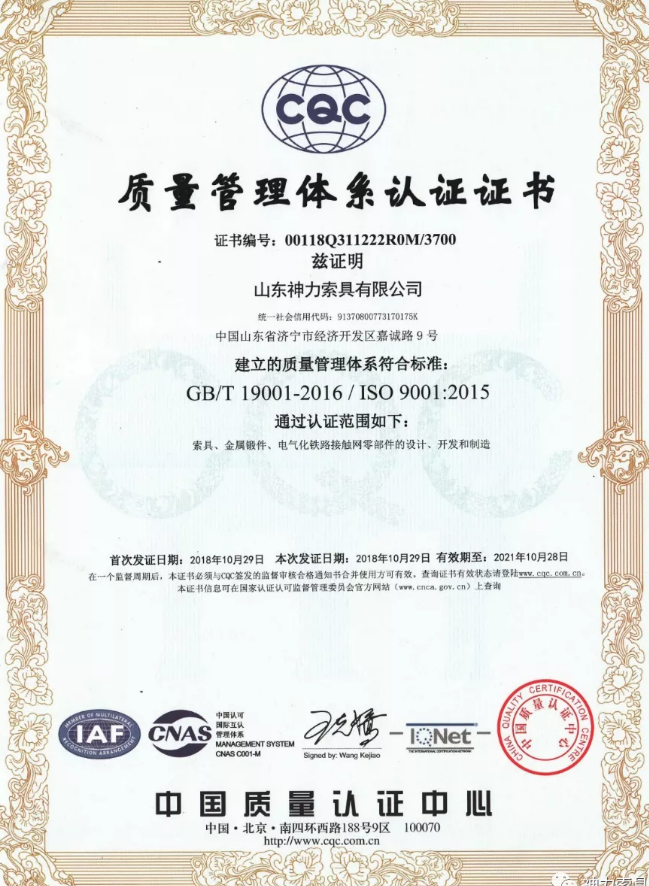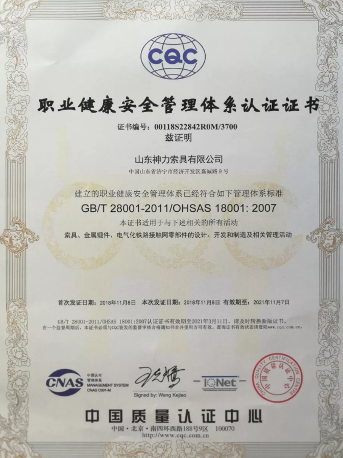 山東神力索具有限公司順利通過2020年度“三標(biāo)”體系認(rèn)證